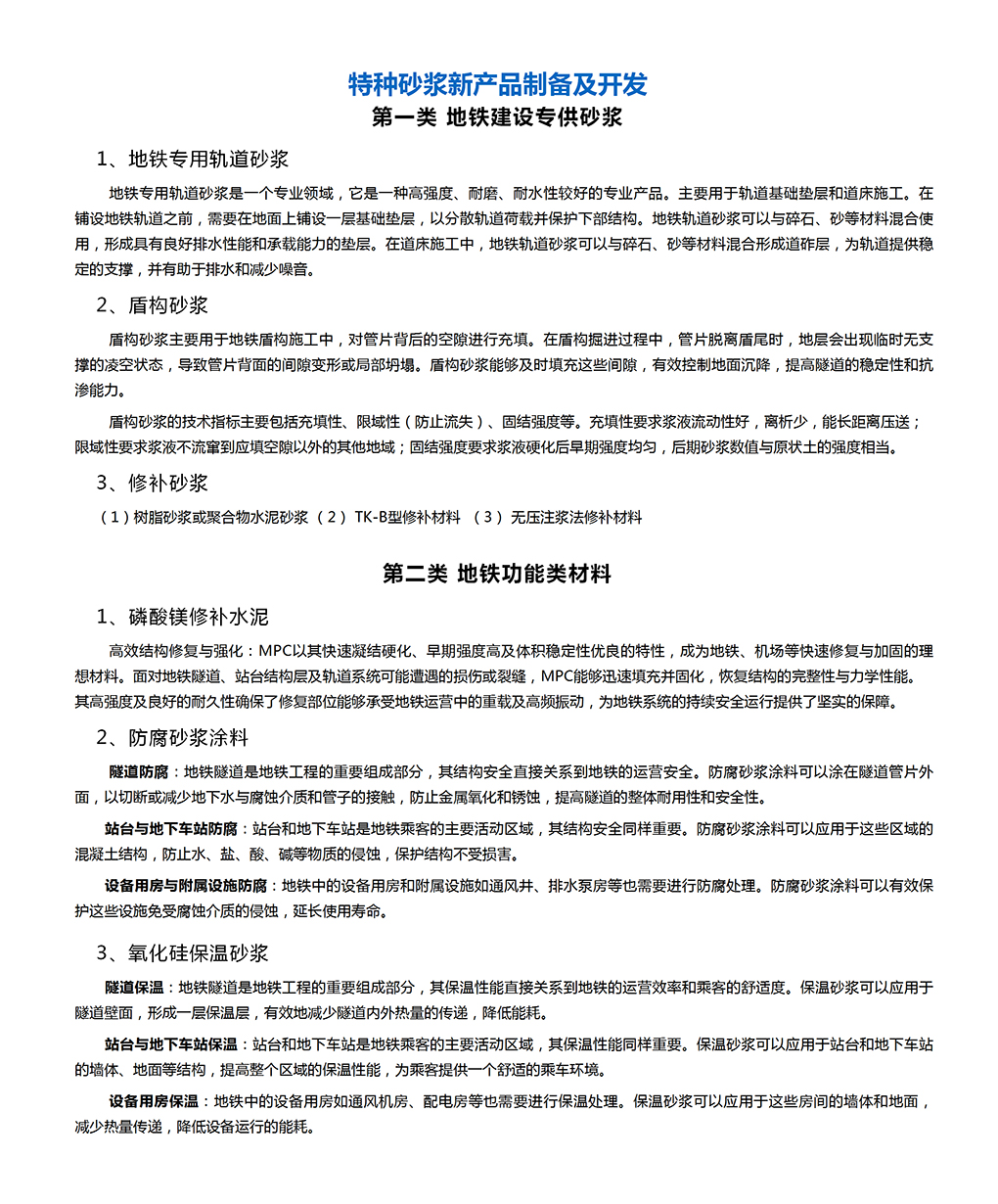特種砂漿新產(chǎn)品制備及開發(fā)